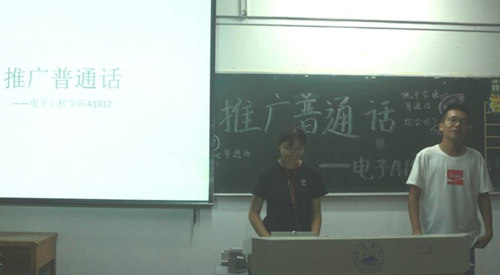 9月16日至22日是第22届全国推广普通话宣传周,为提高同学们的语言文字规范化的意识,弘扬中华优秀传统文化。电子工程学院于9月19日晚在竞知楼组织开展开展“推广普通话”团日活动。此次活动由各班团支书主持。
