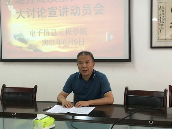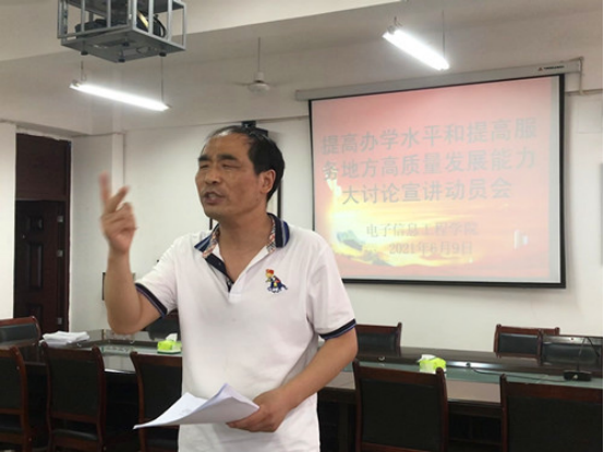 会上,邓长寿结合学院实际,根据学校《提高办学水平和提高服务地方高质量发展能力大讨论活动宣讲提纲》纲领性地进行了宣讲动员。