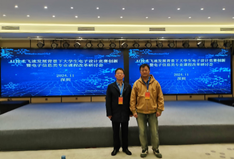 为了提高点点官网师生对大学生电子设计竞赛题目的分析和解答能力,增强与专家之间的沟通交流,提升竞赛的技术水平,点点官网杨世永教授和何俊副教授于2024年11月22日至24日参加了在深圳举办的“AI技术飞速发展背景下大学生电子设计竞赛创新暨电子信息类专业课程改革研讨会”。