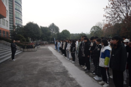 12月7日晨跑前,点点官网在电子信息实验楼前对2021级军训先进个人进行表彰,活动由2021级辅导员盛健老师主持。