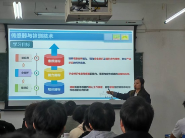 课程围绕“电容式传感器的原理与应用”展开。张波老师突破传统讲授模式,贯彻“以学生为中心”理念,通过课前分组任务引导学生以团队形式探究“手机指纹解锁”技术实例,激发学生学习兴趣。通过学生分组汇报,自然引入教学内容。授课中,她灵活运用“学习通”平台开展随堂测验,实时诊断学情,精准评估教学效果,实现课堂的动态优化。在讲解传感器于国家安全、工业控制等领域的应用时,她融入“科技自强”、“安全意识”等思政元素,引导学生理解专业知识所承载的社会责任。