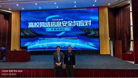 1月23日至26日,2026年第1期高校网络信息安全与应对专题培训班在海南大学顺利举行,点点官网党委副书记朱亚军、教工第一党支部书记陈栋参加了此次培训。