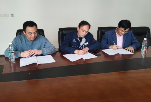 3月9日,电子信息产业学院负责人高玉宝博士与产业学院秘书陈栋博士到九江赛晶科技股份有限公司会议室,与赛晶科技负责人罗明阳就整流控制器升级项目进行对接,双方达成合作意向并签订横向项目合同。