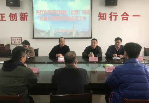 汪傧书记首先对华筑绿建科技有限公司傅总一行人员的到访表示热烈欢迎,希望校企双方能以项目合作为切入点,开展“揭榜挂帅”式的技术问题攻关,以及学生实习和就业等方面的合作。