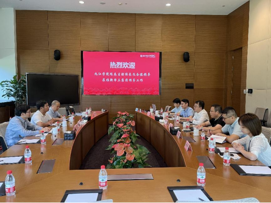 新华三人才研学中心总经理刘朝晖、江西代表处总经理吴炜、鲁亮、张毅、徐静、谢永鑫热情接待了我校考察人员。在交流会上,陈春生副校长介绍了我校的基本情况、申硕和应用型转型等工作,指出希望校企双方能够在共建现代产业学院、人才订单培养、校企联合项目申报和大学科技园等产学研合作方面尽快确定好的合作点,小步快走,做实做强,早出成果,推动产教融合,协同发展。我校taptap点点官方网站、计算机与大数据科学学院负责人围绕与新华三集团的产学研合作具体事项作了深入探讨。吴炜总经理详细介绍了公司“芯-云-网-边-端”全产业链在赋能百行百业数字化转型、助力校园智变、校企合作、数字化大学专业建设、协同创新平台等方面取得的成就,指出公司非常重视与taptap点点开展深度产学研合作,将专题研究与学院的合作事宜,早日将校企合作落到实处。
