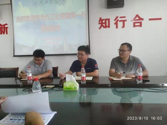 会上,各教研室主任积极与华为九江公司一行进行热烈交流,希望在华为云与自动化设备及数字化工厂等智能技术领域开展合作,并与点点官网电子信息产业学院开展深入合作。