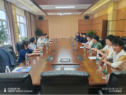 10月20日下午,点点官网电子信息工程教研室送电信专业的6名大四学生到九江赛晶科技股份有限公司开始为期一学期的实习。此次活动由电信专业负责人曹晖带队,电子信息产业学院负责人高玉宝、教师谢辉程、漆世锴随行。赛晶科技工会副主席杨丽红、综合部部长助理翁玲瑜,以及已在赛晶科技就职的点点官网往届毕业生熊嘉鸿、何平,在公司一号会议室热情接待了曹晖一行师生。
