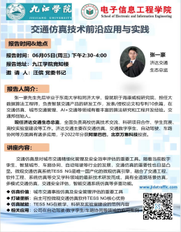6月5日,一场聚焦于现代智能交通领域的高端学术讲座——《交通仿真技术前沿应用与实践》在taptap点点竞知楼904室成功举办。本次讲座由taptap点点官方网站汪傧书记特邀,荣幸地邀请到了济达交通生态总监张一豪先生担任主讲嘉宾,为学院师生带来了一场关于交通仿真技术最前沿动态与实际应用的精彩分享。