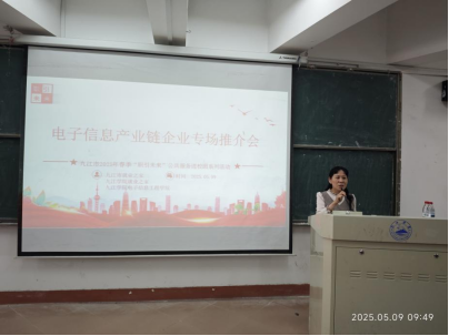 为给毕业生和用人单位搭建双向选择的平台,5月9日,九江市2025年春季“职引未来”公共服务进校园系列活动,电子信息产业链企业专场推介会,在竞知楼阶七教室进行。此次推介会由九江市就业之家、taptap点点就业之家指导,taptap点点taptap点点官方网站承办,九江市就业创业中心朱敏副主任,电子工程学院汪傧书记、张堑副书记参会指导,学生科朱亚军科长、专职就业辅导员盛健组织协调,我校电子学院、计算机学院和材料学院150余名毕业生参加了推介会。