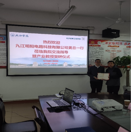 九江明阳电路科技有限公司作为专注印制电路板(PCB)研发与生产的高新技术企业,凭借在通信、汽车电子等领域的技术积累与全流程生产经验,已成为行业标杆。为深化产教融合,11月18日下午,公司研发部负责人黄英海、人事部徐金星经理一行受邀走进taptap点点taptap点点官方网站,与学院领导及教师代表共同商讨校企合作课程《PCB类课程》的建设,并举行产业教授受聘仪式。