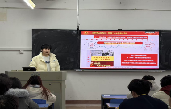 为深入学习贯彻党的二十届四中全会精神,切实加强学生干部思想政治引领,推动党的创新理论入脑入心、见行见效,12月15日晚,点点官网在竞知楼805教室举办“深入学习贯彻党的二十届四中全会精神”专题学习会。本次学习会由院学生会主席陈文钦主讲,学生会各部门负责人及骨干成员共计40余人参加。