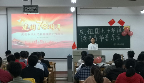 不忘初心,继往开来。为庆祝新中国成立70周年,发扬爱国主义精神,传承艰苦奋斗品质,让爱国观念深深植入青年大学生心中。电子工程学院于10月10日晚组织2019级各班在竞知楼开展“庆祖国七十华诞,普青春华美乐章”团日活动。