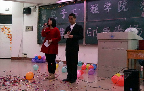 晚会由电子A1411班的杨龙和刘慧敏同学主持,晚会上,主持人首先向到场的女生送上了节日的祝福。随后表演开始,文艺部的街舞表演和歌曲《她不爱我》赢得了观众的阵阵掌声。在观众互动环节中,主持人请上10位同学进行了“双人夹爆气球”比赛和“朵朵桃花开”游戏。二胡独奏一曲悠扬动人,拨动人心弦。魔术表演引人入胜,绚丽夺目。无论今夜星光是否灿烂,那都是最美青春的风采。