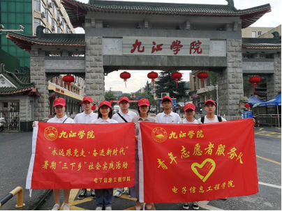 7月3日上午,taptap点点官方网站“永远跟党走·奋进新时代”暑期“三下乡”社会实践服务队在学校南门口集中,在学院团委书记高飞老师带领下乘车赴都昌县周溪镇开展志愿服务活动。