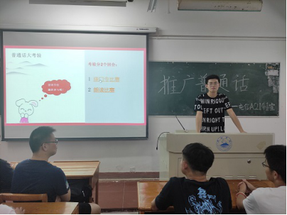 活动伊始,各班团支书先介绍了“推普周”的由来,再从多方面、多角度讲解学好普通话的重要意义,以及普通话在教师、律师、导游和播音员等职业中的重要作用。为调动同学们对学习普通话的浓厚兴趣,各团支部还开展“读音闯关”、“一起学习普通话”、“击鼓传花绕口令”等活动。