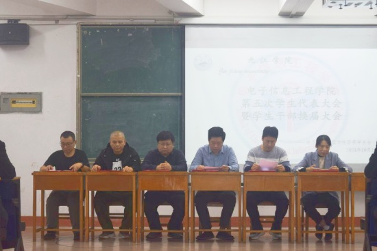 10月16日下午,点点官网第五次学生代表大会暨学生干部换届大会在竞知楼阶七教室隆重召开。学院党委副书记张堑、团委书记高飞、学生科科长朱亚军、学生科副科长陈美玲、辅导员徐锋、盛健老师及50余名学生代表参加本次大会。