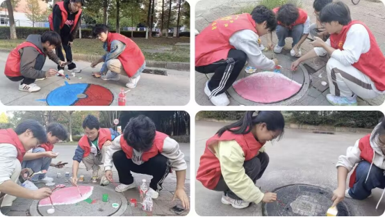 活动中,志愿者们展现了极高的热情和创造力。他们精心设计图案,细心绘制,将环保理念、校园文化、自然景观等元素融入画作之中,使得每一个井盖都充满了故事和生命力。这些作品不仅提升了校园的美观度,也传递了积极向上的校园文化氛围。
