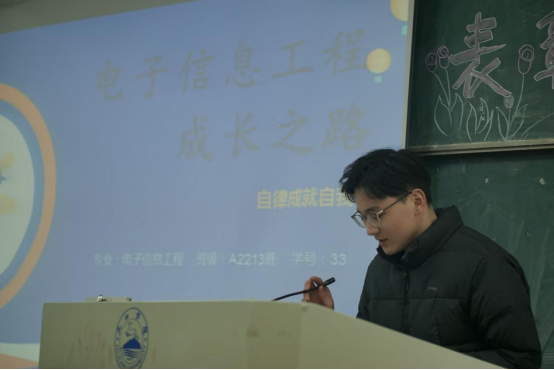 会上,徐聪聪学长率先登场,他以饱含深情的语调,缓缓展开了一段关于学习道路上坚韧不拔、刻苦拼搏的动人篇章。他深情地阐述道:“明确的目标与坚定的执行力,是攀登学业高峰不可或缺的两大法宝。而自律,则是通往成功的坚实基石。它不仅滋养了我的专业素养,更在团队合作中彰显出强大的影响力。”正是这份自律与不懈的坚持,铸就了他荣获国家奖学金的辉煌成就,也为我们树立了追求卓越的标杆。