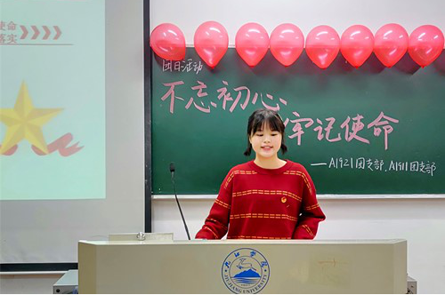 活动伊始,由各班团支书向同学们介绍“不忘初心、牢记使命”主题教育的重要意义,并带领同学们学习了党的十九届四中全会的会议公报。让所有同学了解处于我们这个时代我们需要肩负的使命与责任,每个人都应当争做时代的新青年。随后,同学们纷纷通过分享、演讲、视频等方式,畅谈了自己的学习感悟。最后,在同学们重温入团誓词中结束本次活动。