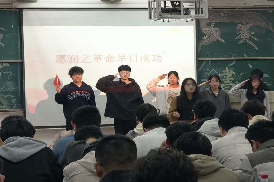 其中A2412班所朗诵《我们临死以前的话》中——“我们是共产党员,为革命而死,毫无所怨,更无所惧”的宣言伴随着PPT 中跳动的烛火光影迸发时,现场观众无不为之动容,最终以89.6分斩获冠军。