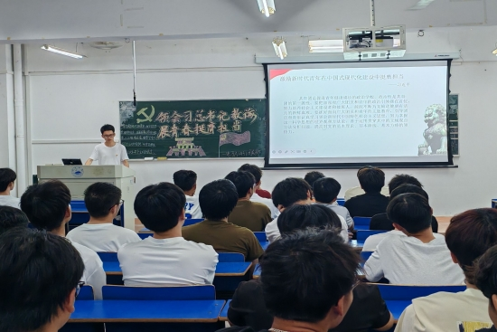 团课伊始,各班团支书借助详实的资料与生动鲜活的案例,深入解读习近平总书记回信内容的深刻内涵。他们用通俗易懂的语言,将总书记的殷殷嘱托与谆谆教诲娓娓道来,着重强调青年在新时代所肩负的使命与担当。台下的同学们个个神情专注,目光紧紧跟随着团支书的讲解,仿佛置身于知识的海洋,沉浸其中,不时低头记录着重点,生怕错过任何一个精彩而重要的瞬间,教室里只听见笔尖在纸上沙沙作响的声音,那是青春奋进的旋律,是对知识的渴望,更是对未来的憧憬。