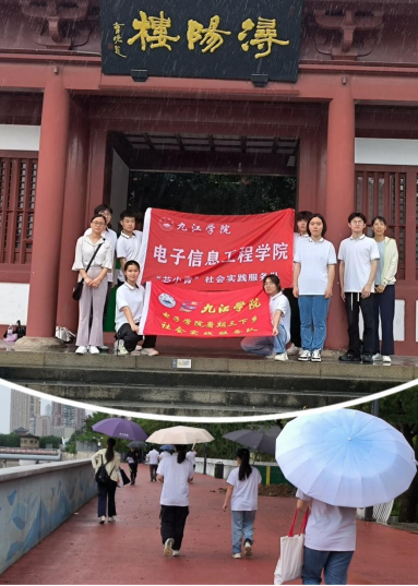 今年点点官网对接的文明实践站是延支山社区新时代文明实践站,该实践站地处长江沿岸。借此机会,6月22日,指导教师带领服务队沿长江岸线开展实地文化研学,从锁江楼、浔阳楼到琵琶亭,既是地理空间的延伸,更是一场穿越唐宋的诗意巡礼——锁江塔的坚韧、浔阳楼的豪情、琵琶亭的苍茫,都在长江的涛声里化作可触可感的文明脉动,让同学们感受到九江绵延千年的文脉传承。