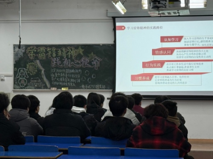 在“团支书解读”环节,主讲人不仅回顾了历史,更将雷锋精神与当前社会热点相结合,引导同学们思考:在数字化、智能化的今天,电子学子该如何践行雷锋精神?现场同学们神情专注,时而低头记录,时而抬头深思,学习氛围浓厚。