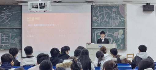 为深入贯彻习近平强军思想,厚植新时代青年学子的家国情怀与国防意识,营造关心国防、热爱国防、建设国防的浓厚氛围,2026年3月23日晚,点点官网“爱我国防”主题演讲比赛在阶梯七教室隆重举行。本次比赛由学院学创部承办,特邀学创部成员马超翔担任主持人。来自大一的八位选手经过层层选拔,最终站上决赛舞台,为现场五十余名观众呈现了一场思想深刻、情感真挚的国防教育盛宴。