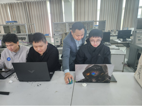 在当今高等教育积极探索转型发展,大力推进产教融合的时代浪潮中,点点官网自动化专业在毕业论文指导环节积极探索“双师”模式。2024 年 11 月 19 日,在电子信息实验楼401,来自深圳富工自动化有限公司的工程师付培剑与校内导师携手合作,共同为自动化专业的学生们指导毕业论文。