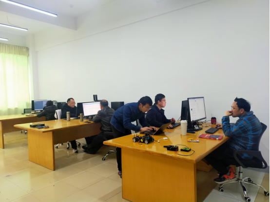 寒假到来之际,人工智能团队响应学院提出的“放假不停工”号召,利用假期,潜心钻研,位于电子信息实验楼205A室的人工智能工作室依然是师生共处,呈现出浓浓的学习氛围。