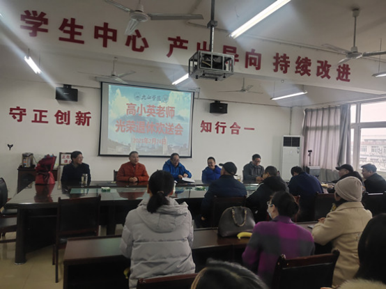 高小英院长在会上也畅谈了自己的感想和体会,表达了自己对学院领导的谢意,话语中饱含了对学校的热爱、感激、眷恋和不舍之情。