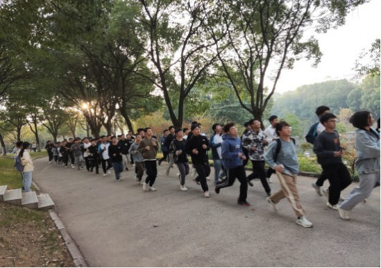 迎着初升的太阳,全院2022级新生围绕美丽的蝶湖湖畔,迈着矫健的步伐,喊着嘹亮的口号开启了大学生涯的第一次健康跑旅程。