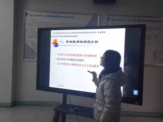 报告会上,《应用型电子信息工程专业劳动教育实施路径探索与研究》(重点)课题负责人武良丹老师分别从课题的研究背景、研究内容、预期目标、研究思路和方法、研究组织与分工、研究创新点、研究预期成果等方面进行了详细汇报。与会专家审阅了课题申报书、开题报告等相关书面材料,对课题存在的问题进行了质询,并提出了具体的修改建议和相关的指导性意见。专家组肯定了课题的重要价值,同意课题开题研究。