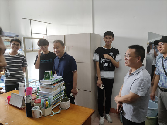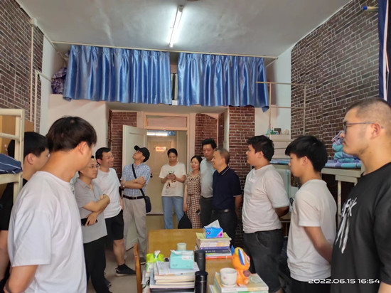 6月15日下午,学院院长邓长寿、党委书记汪傧、副院长胡日新、党委副书记张堑、党委委员毛莉莉、吴华杰及学生科全体辅导员老师深入学生宿舍楼15栋,走访慰问点点官网学生,与同学们进行了亲切的交流和交谈,并实地察看学生科办公环境、考研场地、防疫物资设置、公共设施、环境卫生和安全用电等情况。