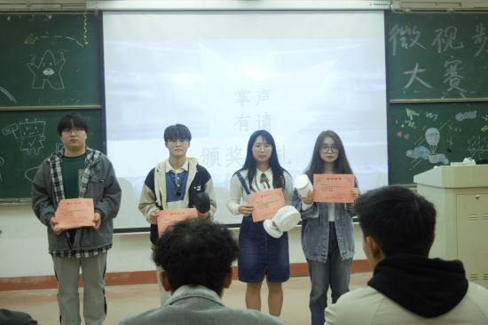 本次大赛作品征集时间为3月10日至28日,共收到相关作品33部。经过评委们激烈讨论和认真评选后,一共有10部优秀作品入围本次决赛。这些视频有的激励同学们追逐自己的梦想、有的讲述了同学间纯真的友情,有的呈现校园美好的时光……每一部作品都充分展示出健康向上的青春风貌和对美好未来的执着追求。通过观看视频、聆听创作者的讲解,进过评委和观众投票,最终A2212班姚哲同学荣获一等奖,A2231班李青艳同学荣获二等奖,A2213班杨艳同学荣获三等奖,A2262班施民杰同学荣获优胜奖。