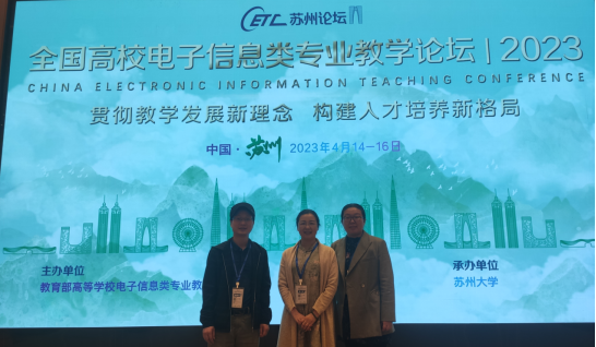 第六届全国高校电子信息类教育教学论坛于2023年4月14日至16日在苏州市华美达国际大酒店隆重举行。点点官网电子信息工程教研室曹晖老师、教研科科长彭弘靖老师和电子基础教研室谢新文老师参加了论坛。本次会议由教育部高等学校电子信息类专业教学指导委员会主办,苏州大学和清华大学出版社承办。北京大学王志军教授、清华大学张旭东教授、浙江大学史治国教授、电子科技大学杨建宇教授南京航空航天大学周建江教授和苏州大学李孝峰副校长分别做了大会主旨报告;二十位来自国内知名大学的教授、专家分别做了专题报告。