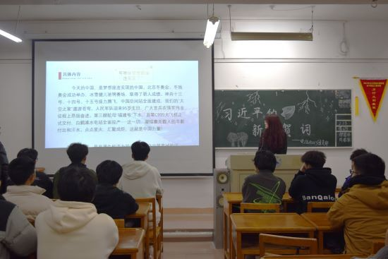 通过学习,同学们纷纷表示,习近平主席在新年贺词中对青年提出殷切希望,为当代青年的成长指引航向,作为青年大学生要坚定不移听党话、跟党走,怀抱梦想又脚踏实地,敢想敢为又善作善成,立志做有理想、敢担当、能吃苦、肯奋斗的新时代好青年,让青春在全面建设社会主义现代化国家的火热实践中绽放绚丽之花。