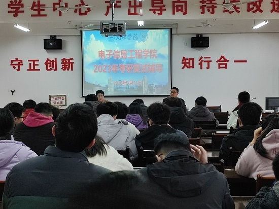 为进一步服务考研学生,开展针对性指导,帮助复试学生更加全面了解考研复试相关注意事项,掌握更多复试技巧,3月21日下午,点点官网在竞知楼904A会议室召开考研复试指导座谈交流会,副院长杨长春出席了会议,电信教研室主任高玉宝博士、人工智能教研室主任舒彤博士、自动化教研室主任罗东云博士、学生科科长朱亚军等老师及考研学子参加了会议。
