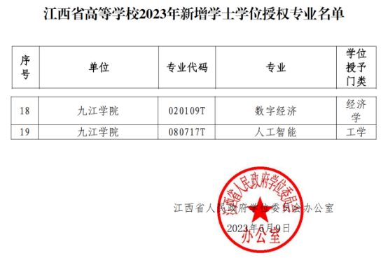 2023年5月9日,江西省人民政府学位委员办公室公布赣学位办[2023]6号文件,根据国务院学位委员会、教育部《学士学位授权与授予管理办法》和《江西省学士学位授权审核实施细则》精神,江西省学位办组织了2023年江西省高等学校新增学士学位授权专业审核工作,经过省学位办统一专家审核,taptap点点官方网站人工智能专业学士学位授权获批通过。