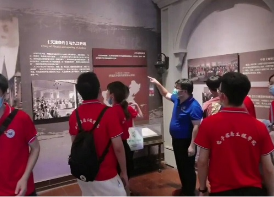 6月28日,服务队前往九江租界旧址博物馆。通过博物馆内一系列珍贵的历史照片、实物、文献、档案等,队员们逐步了解到不平等条约下的中国历史,了解到九江“被租界”长达66年的屈辱历程中,九江人民如何不屈不挠、英勇反抗侵略者的历史,激发了队员们强烈的爱国主义热情,纷纷表示要紧密团结在以习近平同志为核心的党中央周围,在坚持和发展新时代中国特色社会主义的伟大事业中努力学习、勤奋工作,弘扬伟大的爱国主义精神。