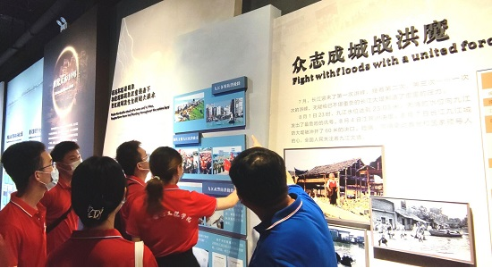 6月27日,服务队前往九江抗洪纪念馆。在纪念馆讲解员的带领下,通过纪念馆的照片、视频等影视资料再次重现1998年抗洪官兵奋不顾身、舍己为人的壮观场面,也感受到灾后军民离别的深深鱼水之情。服务队队员重温了“万众一心、众志成城,不怕困难、顽强拼搏,坚韧不拔、敢于胜利”的伟大抗洪精神,纷纷表示要传承红色基因,大力弘扬抗洪精神,做伟大抗洪精神的传承者和发扬者。