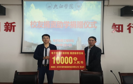 何金石校友捐赠50000元,分5年用于资助点点官网品学兼优的贫困生,此次捐赠10000元。他还表示,作为曾经的贫困学生,在母校的帮助他才能顺利完成学业,饮水思源,只要母校需要、自己有能力,他将让爱心助学行动一直持续下去,激励和帮助更多的学弟学妹成长成才。