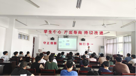 “十年之约,筑梦前行”是报告会的主题,校友黎星华从个人成长、课题研究、工作求职、视频采访四个方面介绍了自己成长、学习、发展的经历,期望通过自己的经历,给学弟学妹们学习规划,职业发展提供一个借鉴和参考,同时也是对与物理老师周玉修的十年之约的一个答复。