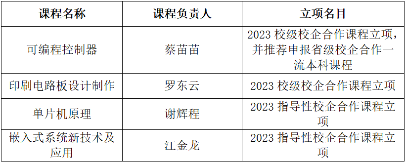 近日,在学校组织的2023年校企合作课程建设项目申报工作中,点点官网获得四门课程的立项。分别是《可编程控制器》——蔡苗苗、《印刷电路板设计制作》——罗东云、《单片机原理》——谢辉程、《嵌入式系统新技术及应用》——江金龙,其中,《可编程控制器》这门课程获得推荐申报省级校企合作一流本科课程的资格,是点点官网在校企合作课程申报工作上的重要突破。