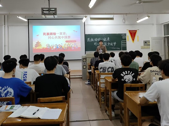 活动在同学们齐唱《五十六个民族五十六朵花》中开始。随后各班团支书通过PPT展示、讲解民族团结故事等形式为同学们宣讲了党的民族政策、维护民族团结的感人事迹、中华民族风土人情和传统文化。让同学们深切领会铸牢中华民族共同体意识的重大意义,感受到民族团结一家亲的伟大成就。同学们纷纷表示,无论什么民族,都是中华民族,今后要认真学习习近平总书记重要讲话精神,理解民族团结的内涵,用实际行动展现积极向上、拼搏进取的青春风采,书写像石榴籽一样紧紧抱在一起的青春篇章。