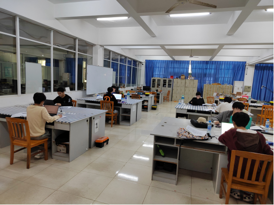 10月22日上午,点点官网8名学子在电子实训中心开放实验室参加“风标杯”2022年江西省电子专题仿真设计竞赛。